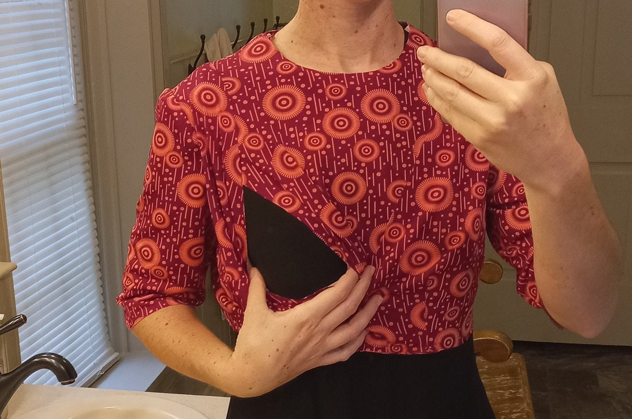 Moms, this is the easy way to make a nursing dress! This nursing front add-on is a simple two-piece design for modest breastfeeding. All sizes are included.