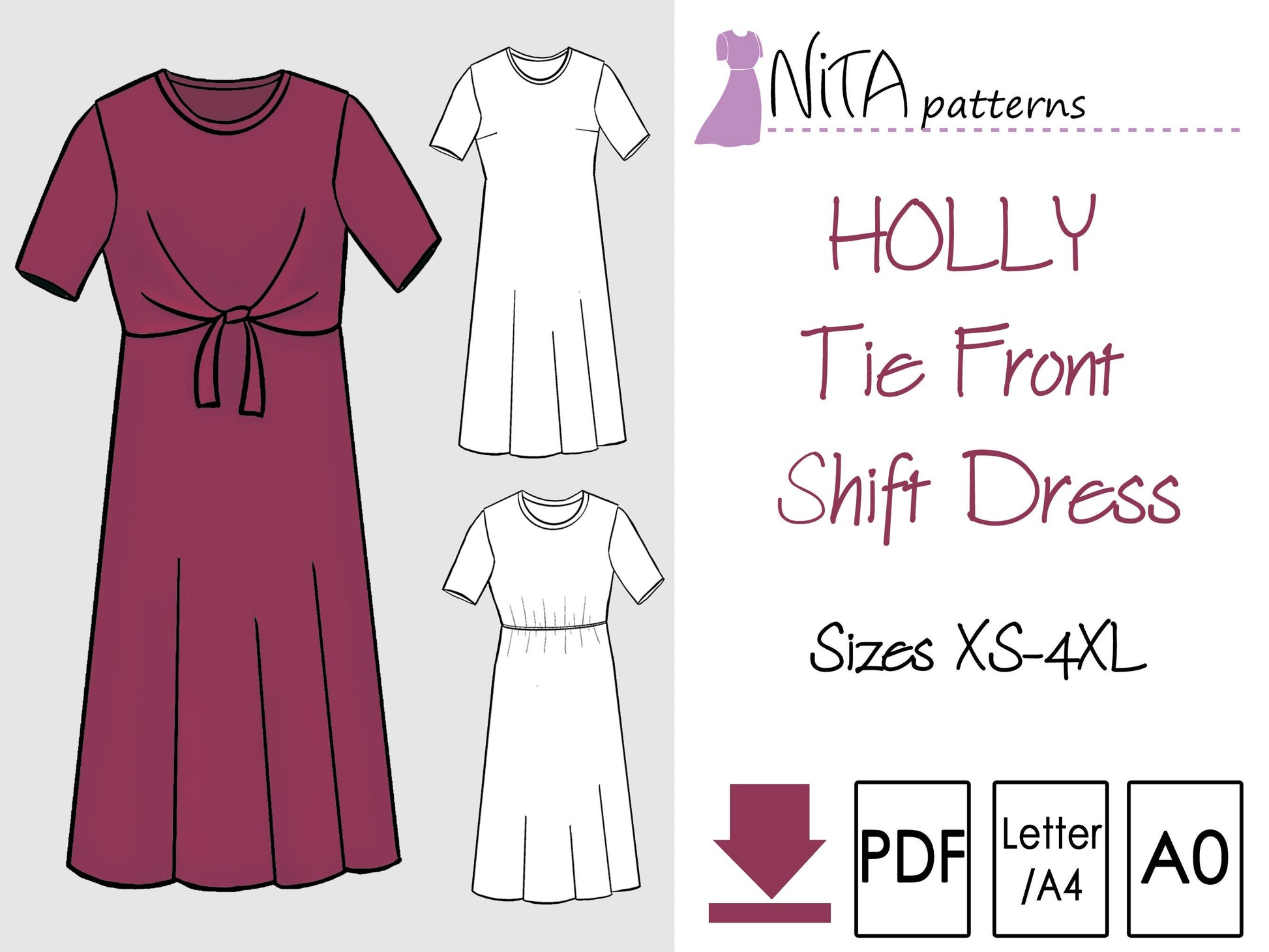 PDF Girls Holly Shift Dress Sewing Pattern| Tie Front Dress Pattern | Twist Front | Beginner Knit Dress
